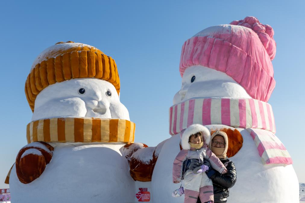 ■时下,“冰城”哈尔滨正在上演一年一度的寒冬浪漫,俏皮可爱的大雪人,冬日限定的冰封黄玫瑰,建筑艺术广场的盛装写真……吸引着人们来到这里感受“尔滨”的浪漫风情。